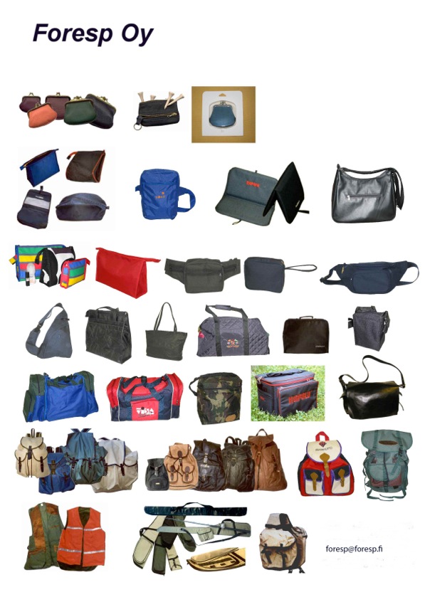 Foresp Oy - Tuotteet Pakkaukset ja painotuotteet www.joutsenpaino.fi Liikelahjat Laukut, kassit ja reput Laukut, kassit, reput ja muut kangas ja nahkatyöt mittatilaustyönä. Suunnittelemme tarpeisiinne soveltuvan ratkaisun. Kukkarot